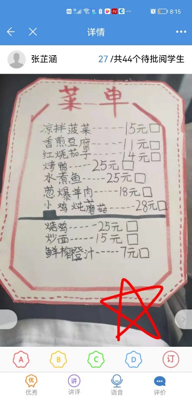 部分学生作业情况: