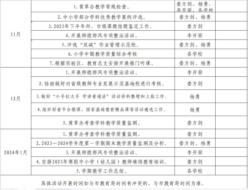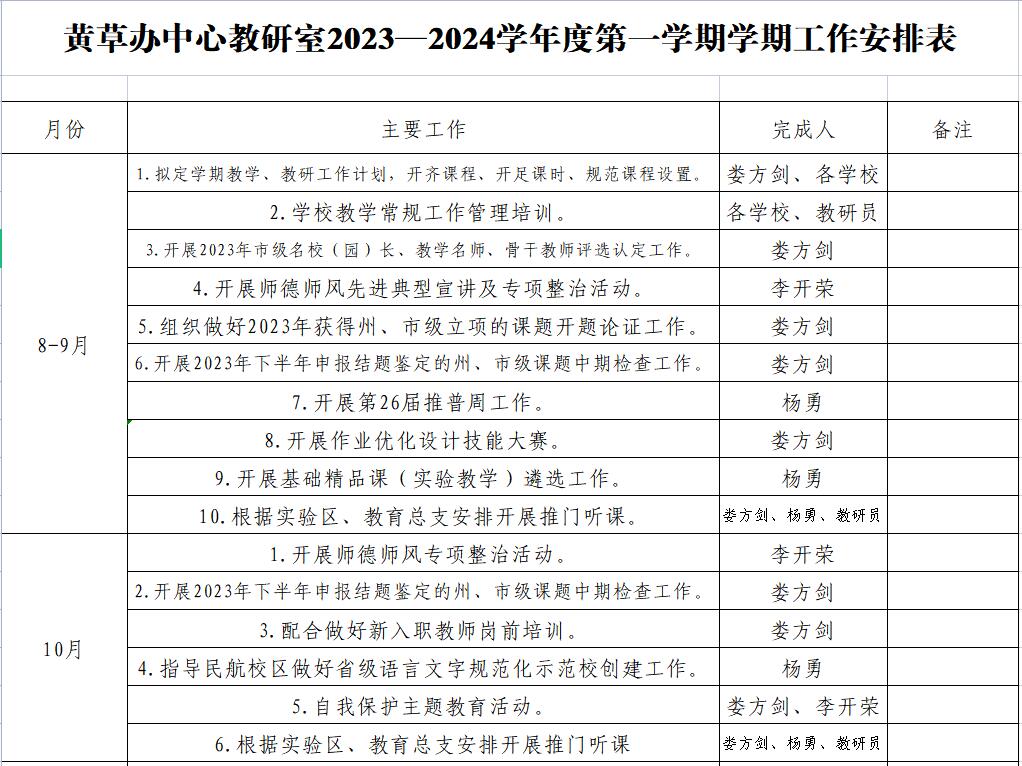 黄草办中心教研室2023—2024学年度第一学期学期工作安排表