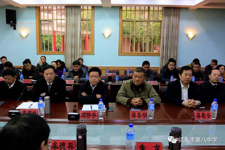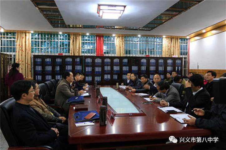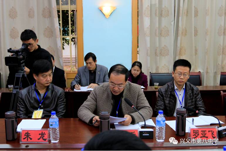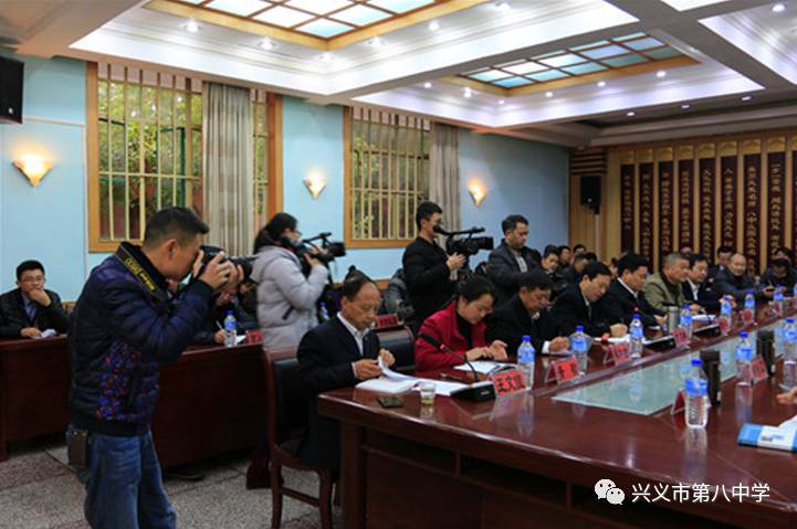 12月26日上午,兴义八中省级示范性高中第一次评估工作反馈会在学校翔宇楼会议室举行。省评估组专家威宁县民族中学校长牟德兵、石阡民族中学校长罗亚飞、省教科院研究员朱龙、息烽县第一中学校长罗修军、平塘民族中学校长刘常杰、瓮安中学校长余家品、黔西一中校长张义嘉,黔西南州人民政府副州长邓修宇、黔西南州教育局局长梁喜明、兴义市委副书记、市人民政府市长袁建林、兴义市人大常委会主任蒋蜀安、兴义市政协主席熊和金、黔西南州教育局副局长李坤、兴义市人民政府副市长青松、兴义市政协副主席田进领、兴义市教育局副局长胡安荣以及学校领导班子参加了反馈会。
